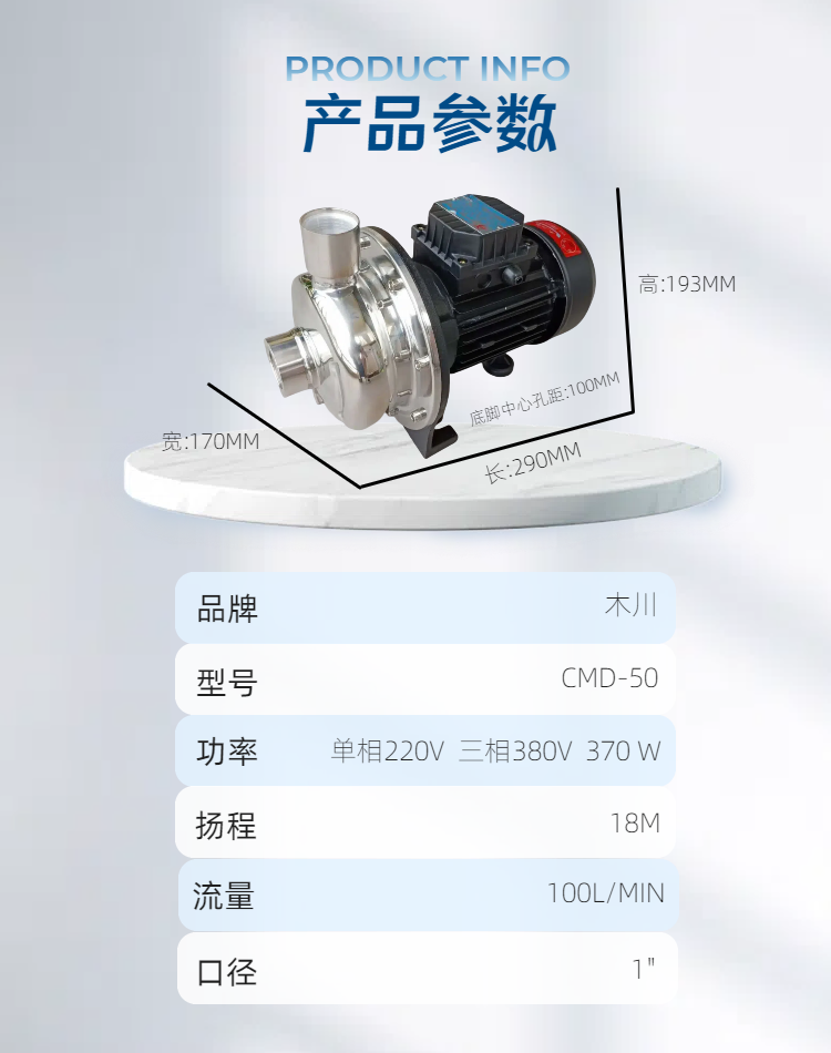 CMD50不锈钢冷热水泵370W